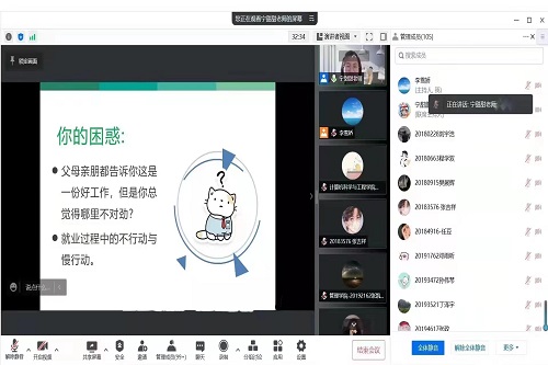 为促进2022届毕业生更加充分更高质量就业,引导毕业生树立正确的价值观、就业观和择业观,不断提高就业核心竞争力,学校于4月21日举办“就业直播间”首期活动暨毕业生就业观教育公开课线上讲座,全体就业工作辅导员及各学院毕业生代表近200人参加活动。