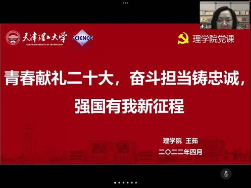 为进一步贯彻习近平新时代中国特色社会主义思想,深化“党史”专题教育学习效果,建设高素质学生党员队伍,2022年4月6日,理学院举办党校初级班开班式暨专题培训第一课,院党委书记王茹老师讲授题为“青春献礼二十大,奋斗担当铸忠诚,强国有我新征程”的主题党课。本期入党积极分子及学生党员共计80余人参加本次培训。