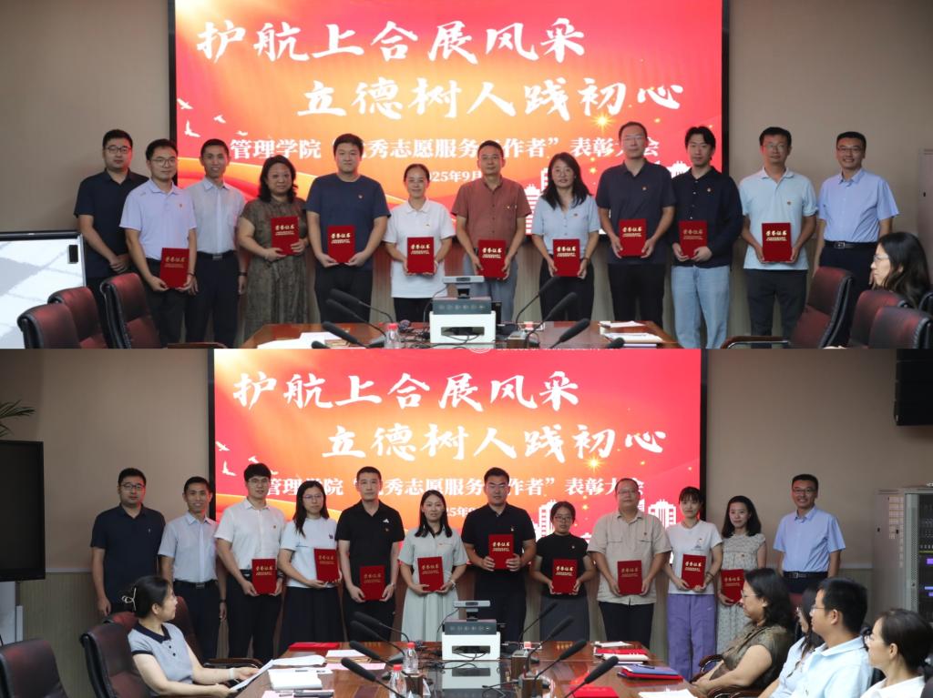 近日,为落实立德树人根本任务,厚植师生员工的家国情怀,管理学院举办“优秀志愿服务工作者”表彰会暨教师节座谈会。党委常委、副校长苏荣华出席会议。党委组织部、党委教师工作部、基建处负责同志,管理学院领导班子成员、暑期服务上海合作组织天津峰会的社区志愿服务党员教师代表和青年教师代表参加会议。