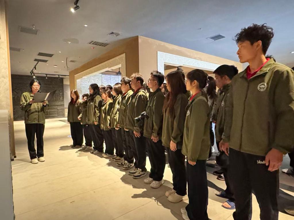 支教团成员尹余晴讲授主题团课《爱国力行 青春报国》。她分享了自己支教过程中的经历,围绕文物背后的历史故事和文化传承,表示新时代青年当怀赤诚爱国心、立铿锵报国志,以担当为笔、以奋进为墨,在时代画卷中书写家国情怀,为边疆教育发展注入青春动能。