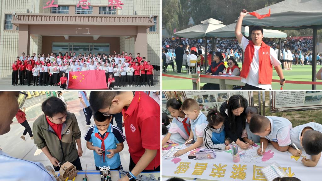 支教团与中小学联合拍摄国庆献礼视频,串联起课堂讲台、校园一角、驻地生活等场景,生动诠释“以青春践行使命”的援疆初心。