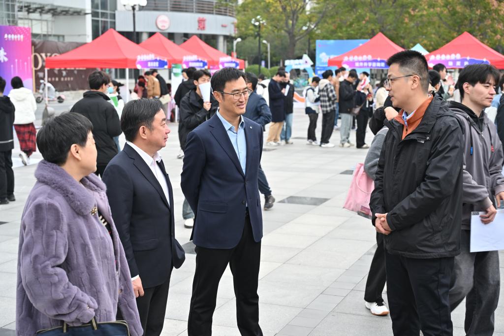 10月22日,学校在朝阳广场举办第七届“职场扬帆·创赢未来”就业“双创”服务周大型校企供需对接服务展示活动。党委常委、副校长叶宁出席活动,相关部门主要负责同志参加。