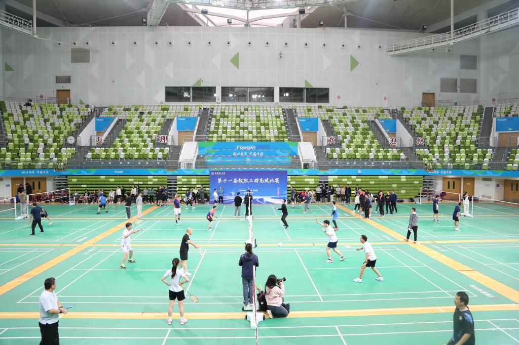 11月8日,学校第十一届教职工羽毛球比赛在体育馆拉开帷幕。党委常委、副校长陈胜勇宣布比赛开始,党委常委、副校长王铁为比赛开球。